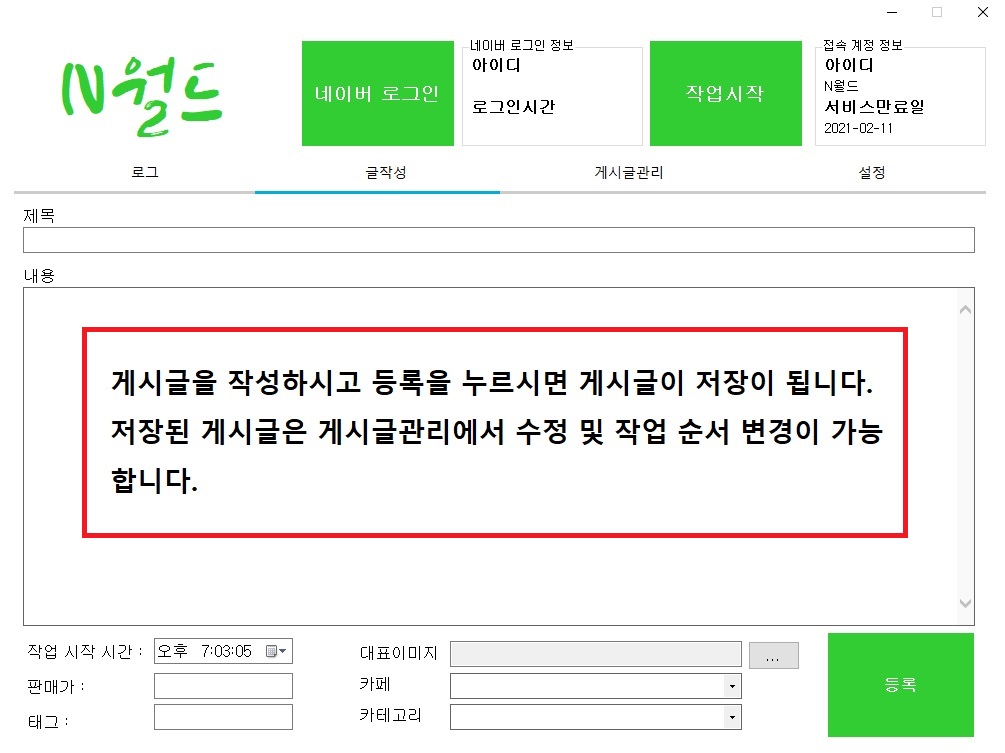 24시간 컴퓨터만 켜두시면 설정된 시간 간격으로 지속적으로 글을 업로드하구요.