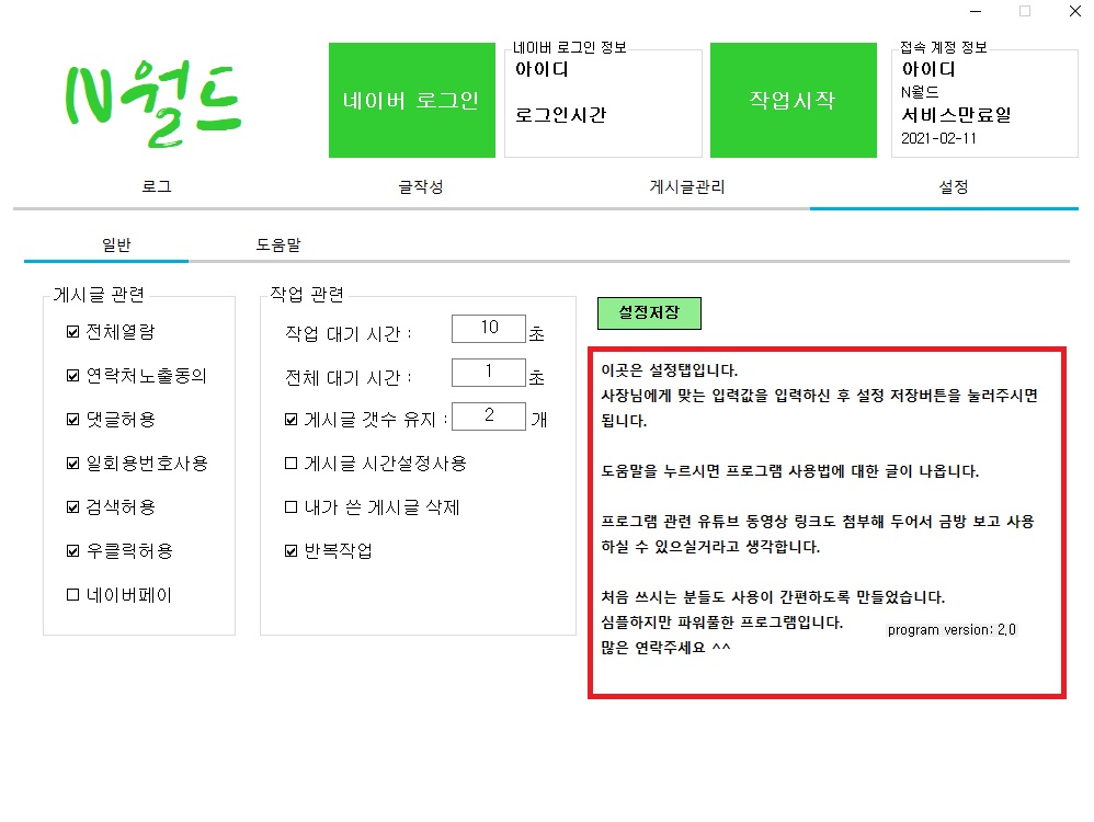 네이버 정책이나 프로그램에 이상이 생길 경우 지속적으로 업데이트도 진행합니다.